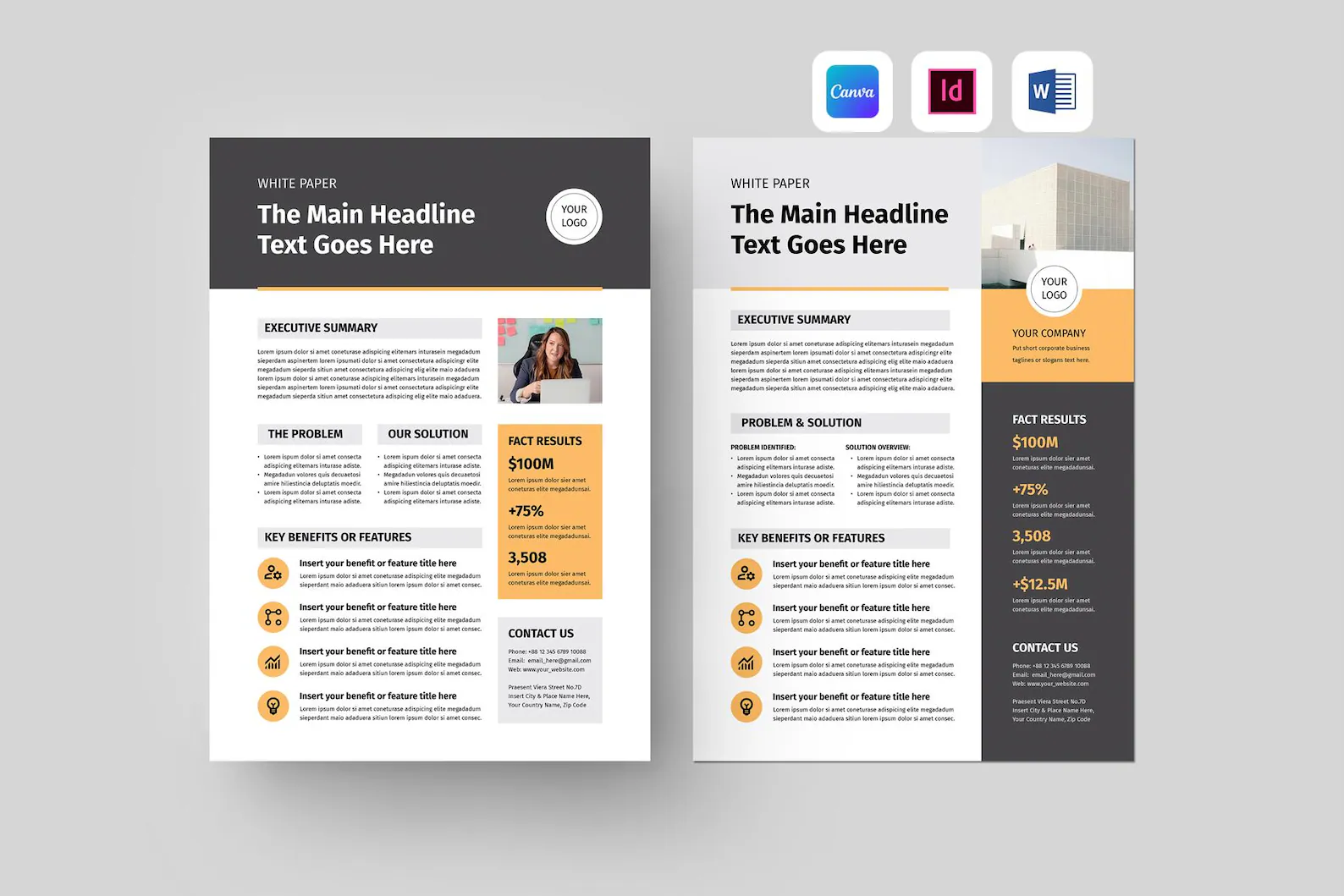 Our E-book & Whitepaper Layouts give you polished, easy-to-edit templates for creating high-quality digital publications. Whether you’re sharing research, publishing a guide, or building authority in your industry, these layouts make your content look as good as it reads.